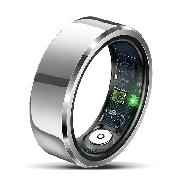 智能健康指环 —— 让未来触手可及 这不仅仅是一枚戒指,更是您指尖上的私人健康顾问。它集成了心率传感器和血氧传感器,能够同步运行,精准捕捉身体状态变化。硬质外圈搭配柔软内侧设计,佩戴贴合无压感,全天候舒适体验。