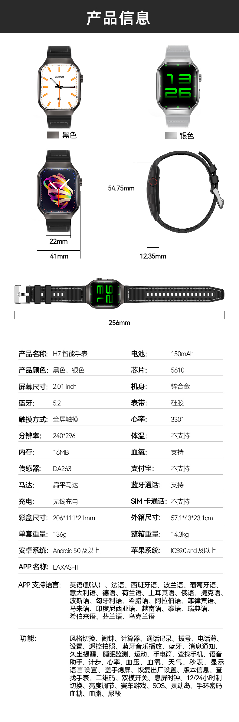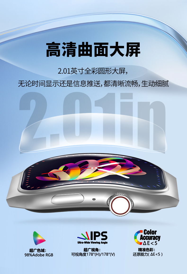 产品亮点: 集多种功能于一体的智能手表,拥有2.01英寸高清曲面屏,支持无线充电和蓝牙通话。它具备心率监测、血氧监测、睡眠监测等健康管理功能。