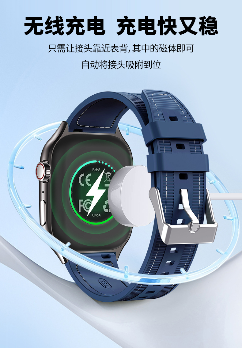 •无线充电:支持无线充电,只需将充电器靠近手表背部,即可自动吸附充电,方便快捷。