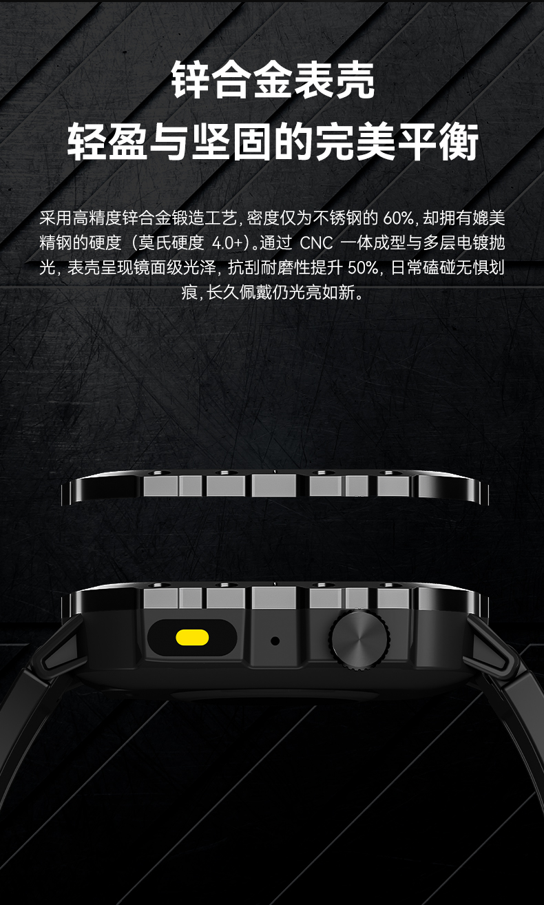产品亮点: 配备 2.01 英寸高清曲面屏,视觉体验出色;支持无线充电,充电时只需将连接器靠近手表背部,内置磁铁即可自动固定,充电快速稳定;具备蓝牙通话功能,可直接在手表上接听、拨打和挂断电话,查看通话记录,让沟通更便捷。它拥有多种运动模式,如跑步、篮球、健身、骑行等,能精准计算卡路里消耗,助力你制定科学运动计划。同时,搭载新光学传感器,可实时监测心率、睡眠、血压、血氧等健康数据,让你随时掌握自身健康状况。